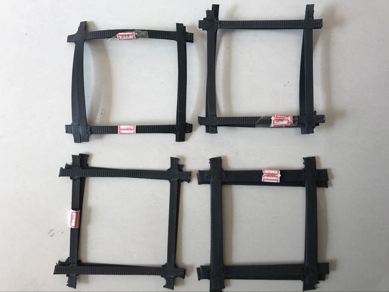 現有的剛性筋材主要有:扁鋼帶,帶肋鋼帶,鍍鋅鋼帶,不銹鋼鋼帶等,而柔性筋材有聚丙烯條帶,塑料土工格柵,經編格柵等。介于這兩者之間,可以總和剛性筋材和柔性筋材歸納優勢的便是類似鋼塑土工格柵這樣的鋼塑復合加筋帶,它歸納了柔性和剛性兩方面的優勢,在高強度碳素繃簧鋼絲外面裹覆了聚乙烯樹脂,一層受力材料,一層維護材料,經超聲波焊接成的復合型土工材料。